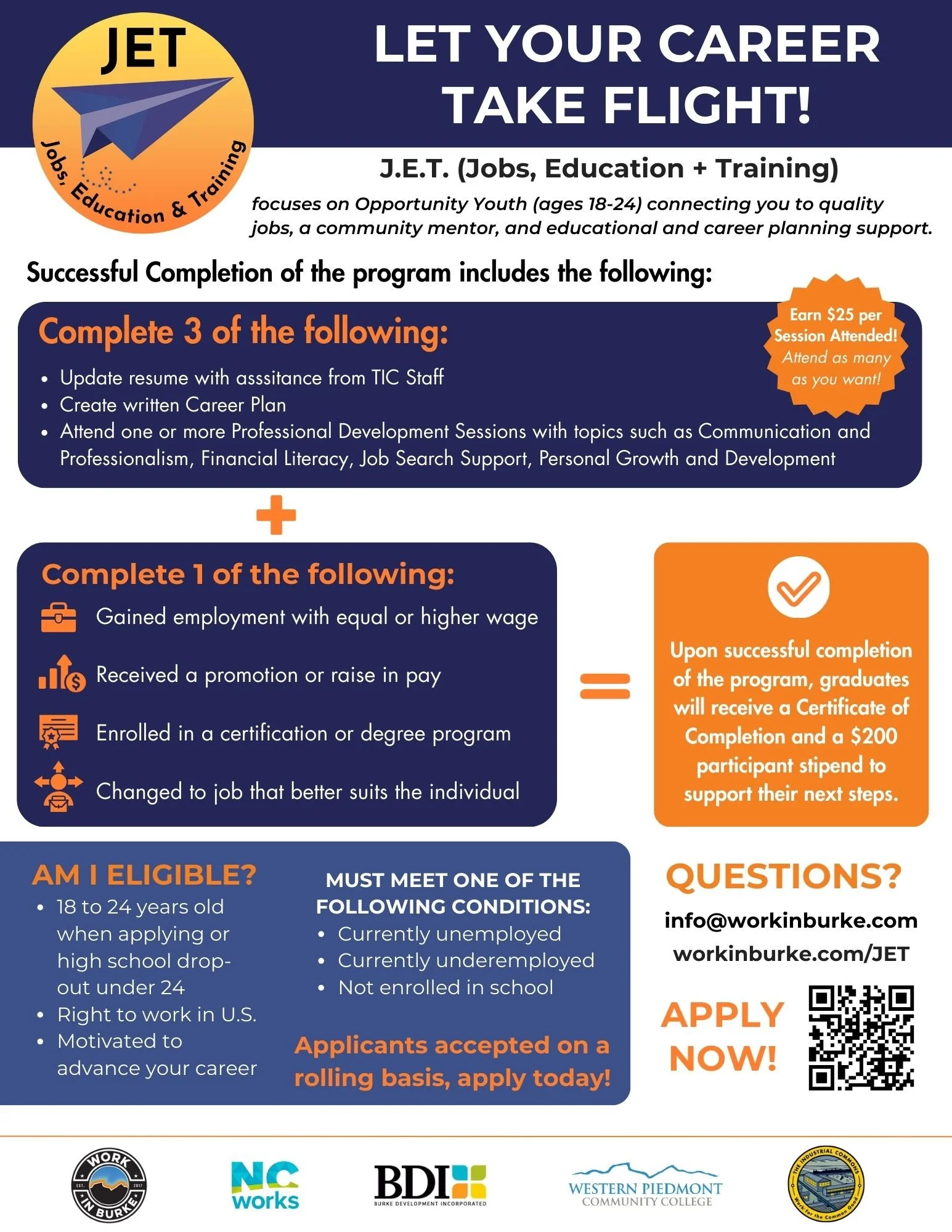 The J.E.T. program focuses on Opportunity Youth ages 18-24, connecting them to quality employment opportunities in Burke County, a community mentor, and educational and career planning support.